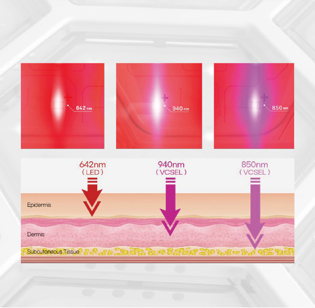 VCSEL laser stands for vertical cavity surface emitting laser. This is a type of semiconductor laser that emits a laser beam perpendicular to its top surface. The laser's small size is highly beneficial for miniaturizing the product. Furthermore, it offers improved straightness compared to traditional side-emitting lasers. This increased straightness enables it to reach the deeper layers of the skin and activate cells with greater efficiency. With low operating current characteristics, they are stable over a wide temperature range and have a longer lifetime than conventional lasers.