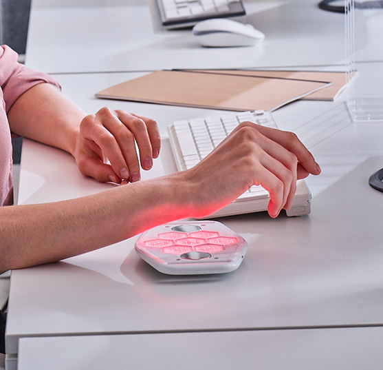 The PainQ hexagonal module is made up of a powerful laser light source that concentrates on the affected area, promoting rapid healing through a bio-promoting effect. (Patent registered)